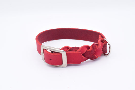 Hundeleine/Bodenarbeitsleine aus Fettleder in rot (messing)
