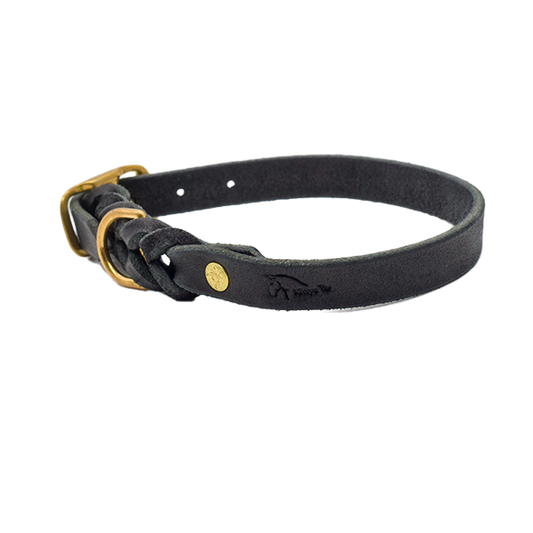 Hundehalsband Gr. M aus Fettleder in schwarz (messing)