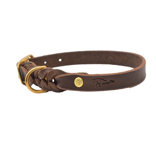 Set Gr. M - Hundehalsband und -leine aus Fettleder in braun (messing)