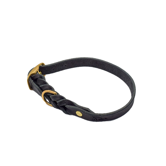 Set Gr. M - Hundehalsband und -leine aus Fettleder in schwarz (messing)
